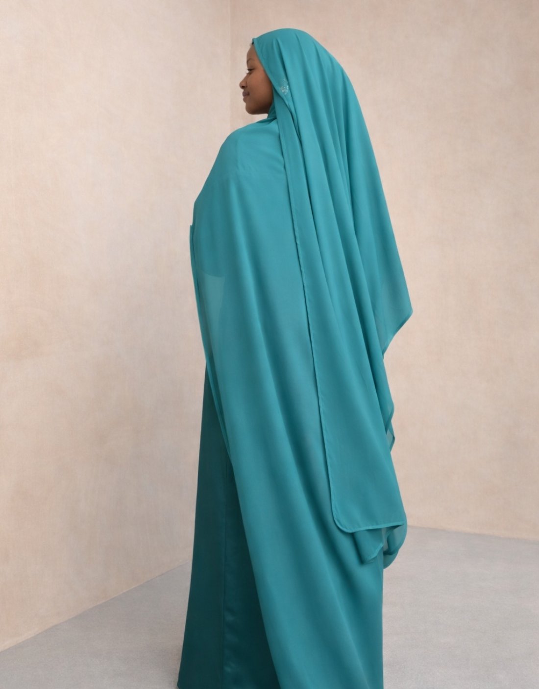 Breathable, softly structured veil that drapes with intention, offering modest coverage while remaining light against the skin.