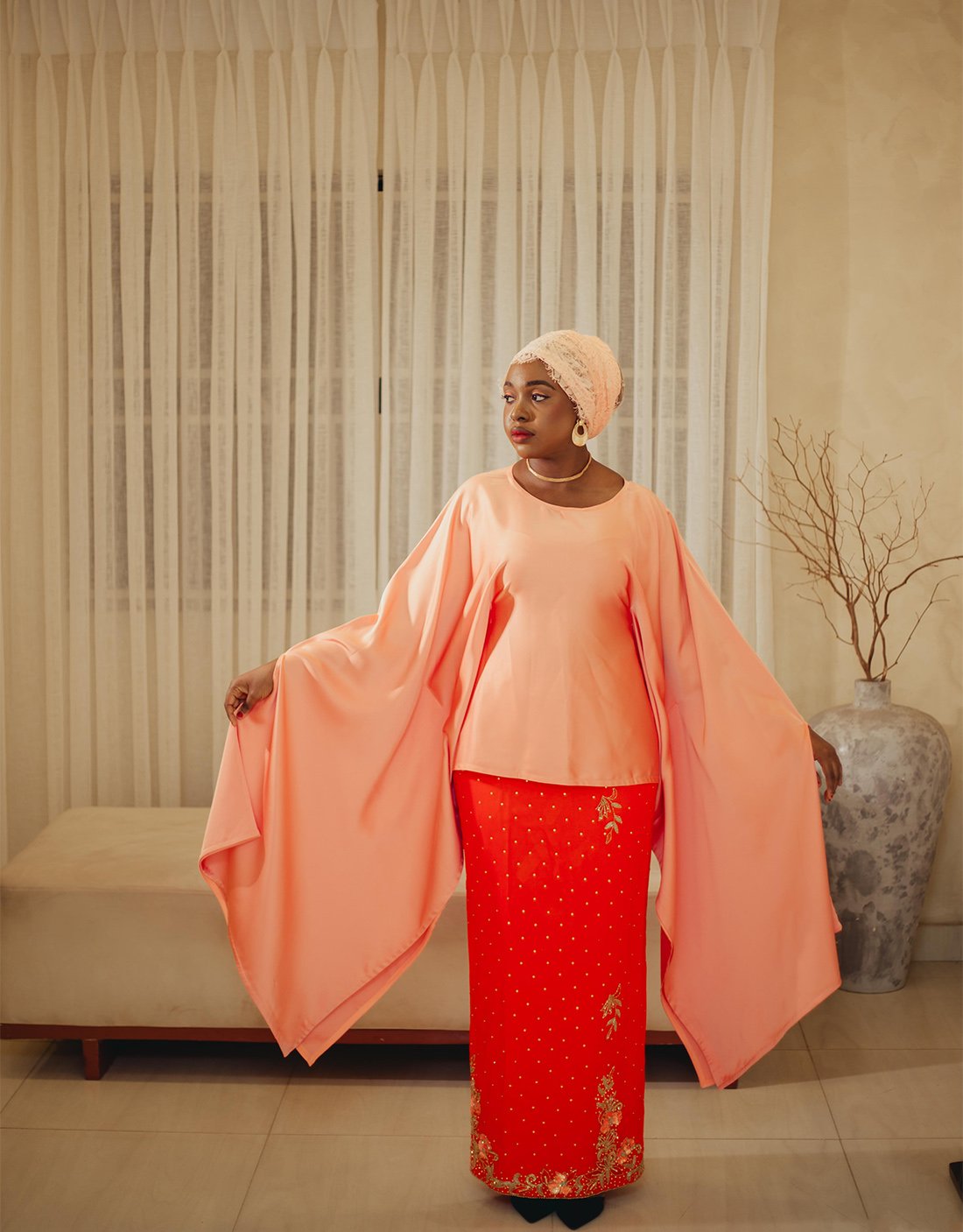 Please note that slight variations in colour may occur due to lighting and screen settings. For pieces made using African print or dyed fabrics, pattern placement may vary from one garment to another.